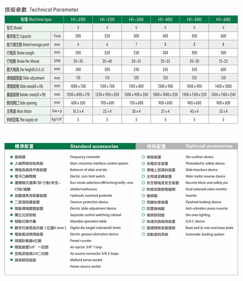 • H1系列直柱型單曲軸鋼架沖床